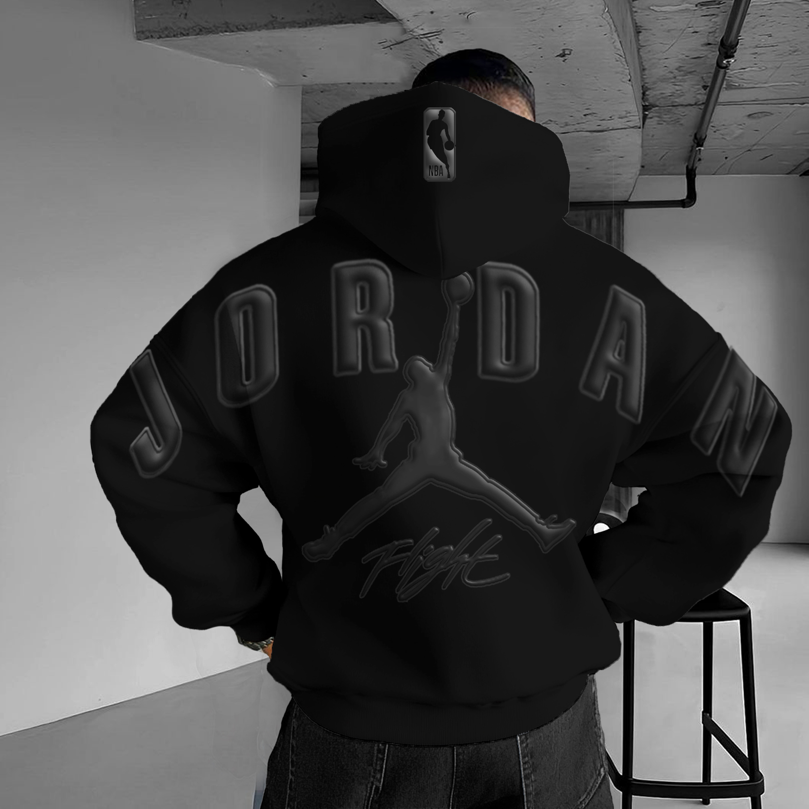This classic black AJ* hoodie perfectly captures the essence of basketball culture. The back features the iconic AJ* text and the famous Jumpman logo, showcasing the brand's unique style. Made from soft, durable fabric with a cozy interior, it’s ideal for daily wear or athletic activities. Whether you're training or out on the street, this hoodie brings the perfect blend of athletic style and fashion.