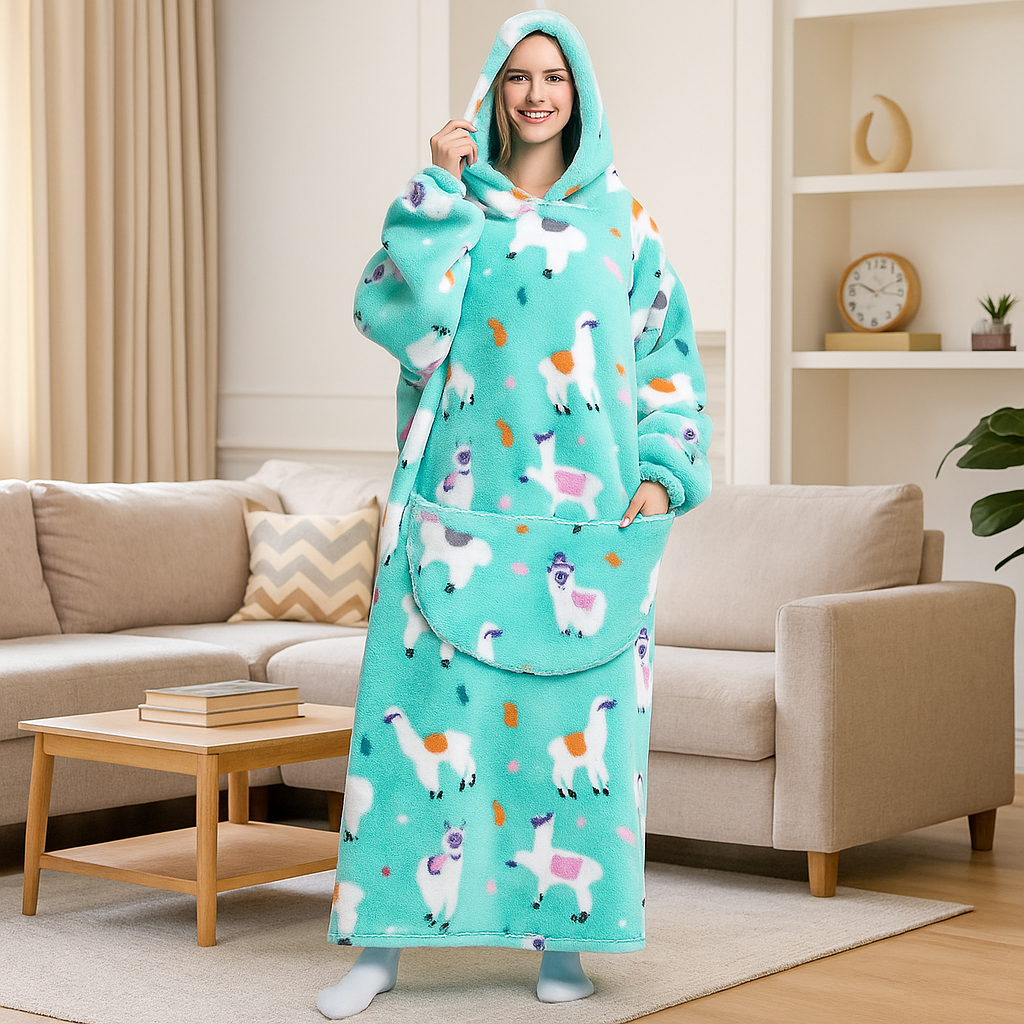 Designed with an oversized fit, spacious sleeves, and a roomy pocket for your essentials, this wearable blanket keeps the warmth in and the chill out. It’s lightweight yet insulating, machine-washable, and perfect for cold mornings, movie nights, camping trips, or gifting to someone who’s always cold.