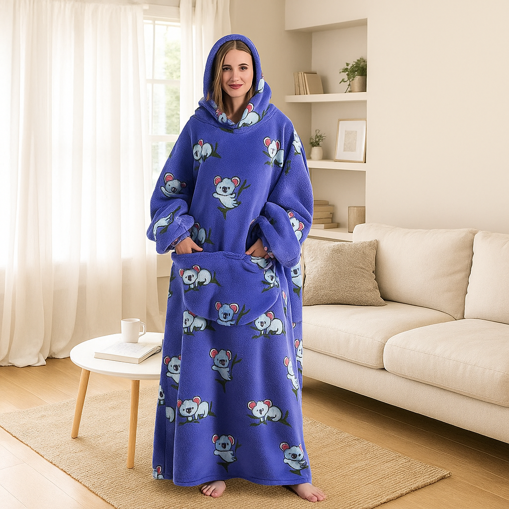 Stay warm, cozy, and completely hands-free with our ultra-soft wearable blanket. Made from plush, breathable fleece, it wraps you in full-body comfort while allowing you to move freely — whether you're lounging, working from home, watching TV, or stepping outside for a quick errand.
