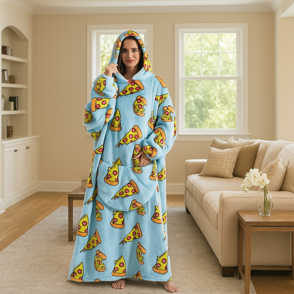 Designed with an oversized fit, spacious sleeves, and a roomy pocket for your essentials, this wearable blanket keeps the warmth in and the chill out. It’s lightweight yet insulating, machine-washable, and perfect for cold mornings, movie nights, camping trips, or gifting to someone who’s always cold.