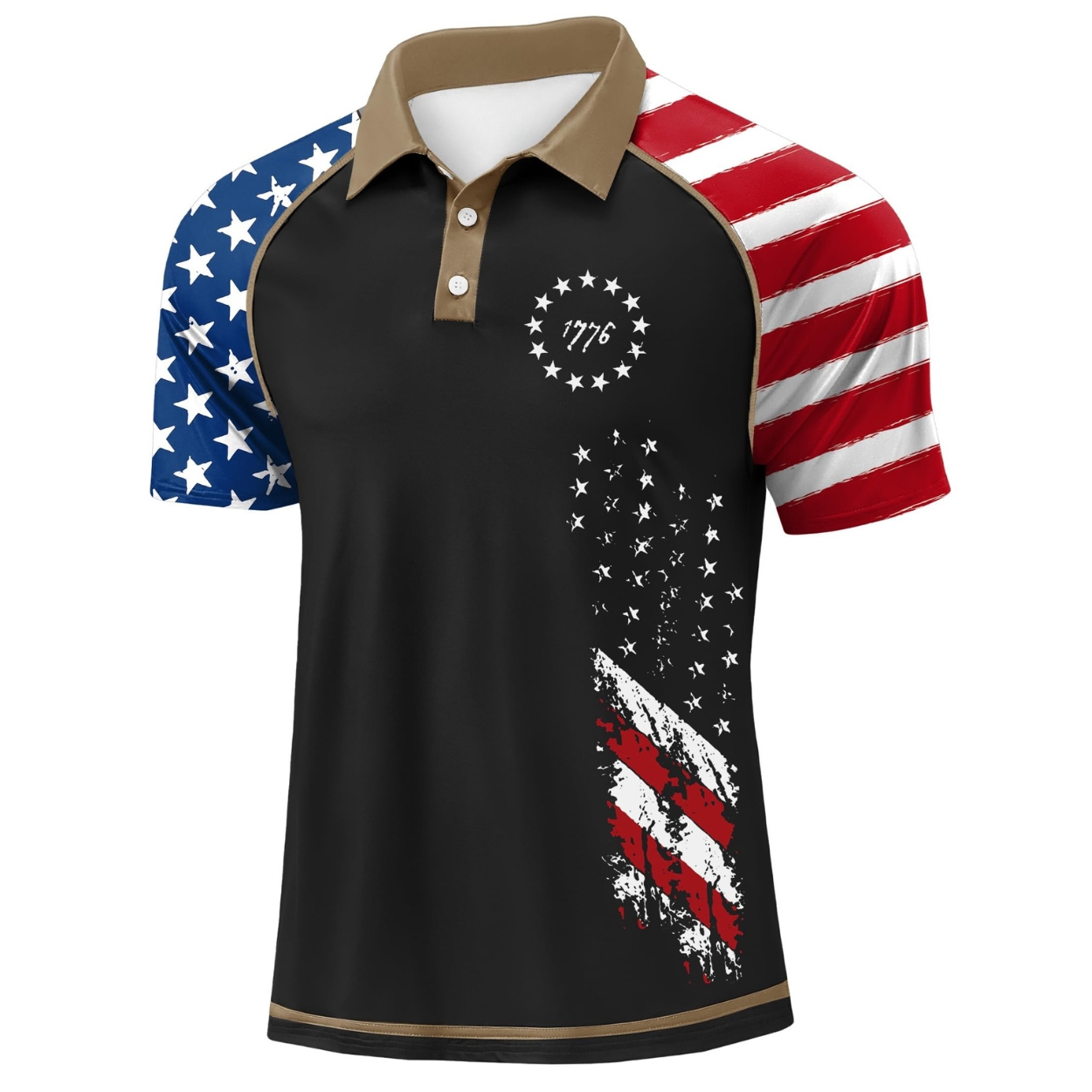 Men's Short Sleeve Golf Shirt 1776 USA Flag Graphic Button Polo Shirt