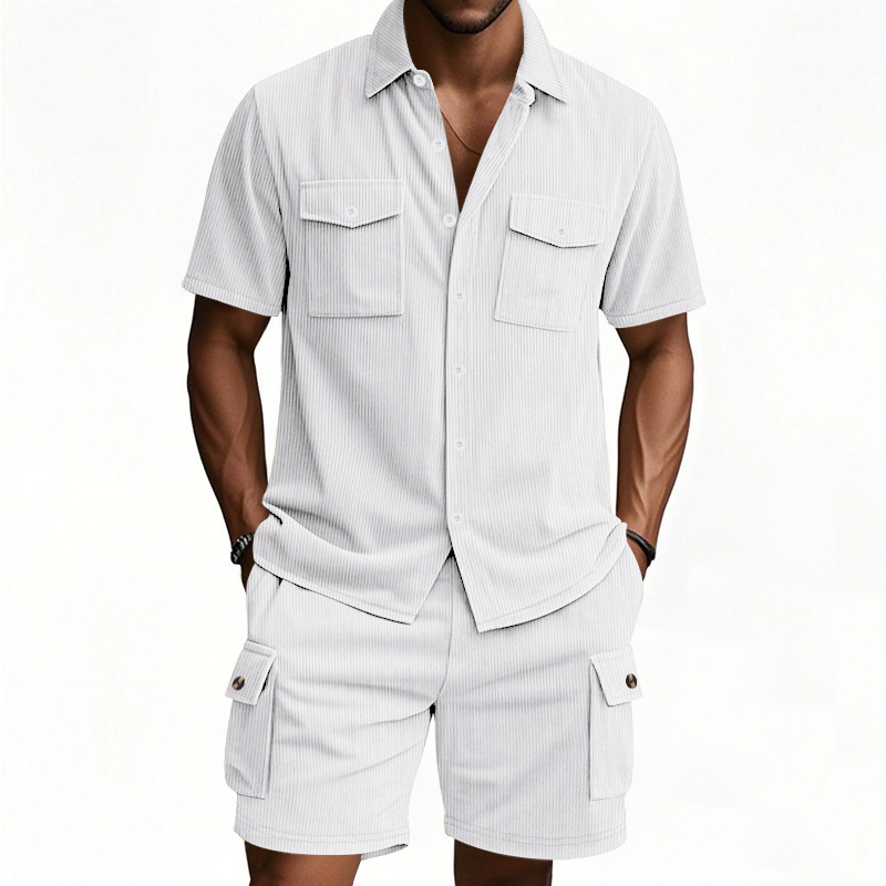 Summer Corduroy Tooling Shirt Set Short Sleeve Shorts Men's Outdoor Hunting Men's Casual Suit