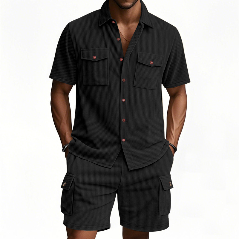 Summer Corduroy Tooling Shirt Set Short Sleeve Shorts Men's Outdoor Hunting Men's Casual Suit