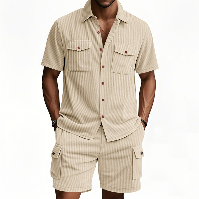 Summer Corduroy Tooling Shirt Set Short Sleeve Shorts Men's Outdoor Hunting Men's Casual Suit