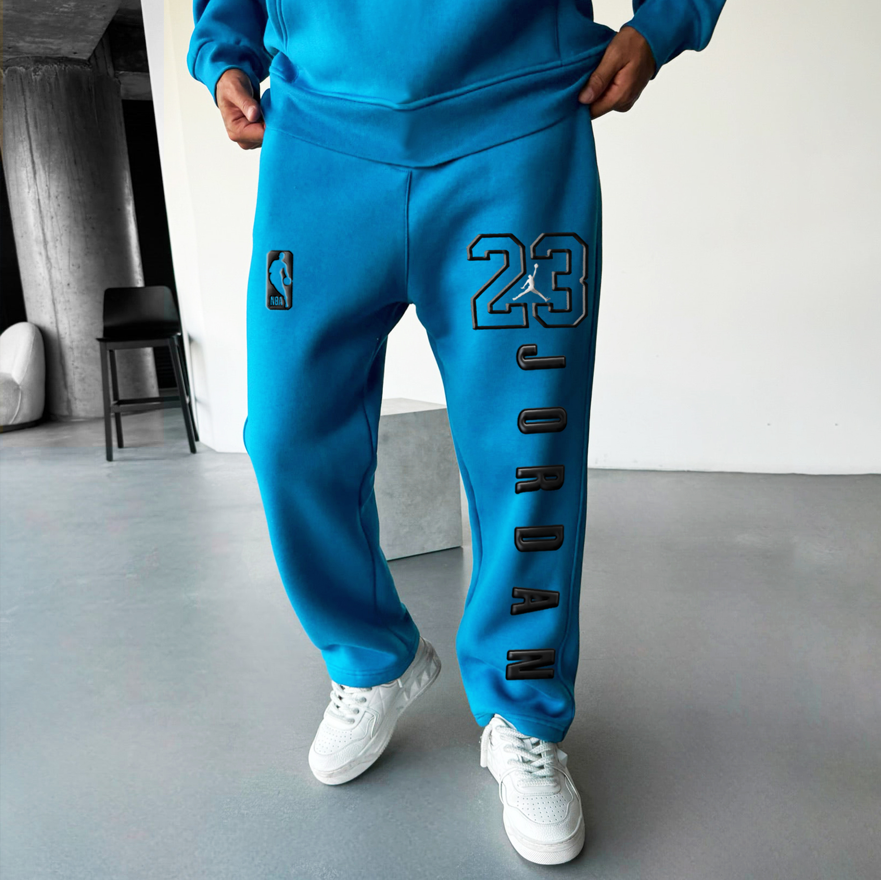 These black AJ* sweatpants bring together style and comfort, with the iconic " AJ* " text running down the leg in bold blue letters. The "23" and Jumpman logo on the front highlight the basketball legend’s impact, while the logo adds a touch of athletic authenticity. Designed for everyday wear, these sweatpants are perfect for casual outings, gym sessions, or simply lounging in style. With a comfortable fit and high-quality fabric, they offer both performance and fashion.